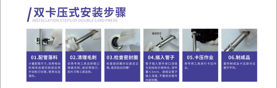 目前在連接方式的使用上,卡壓連接非常多,再者是環(huán)壓式,市面上這兩種的安裝方式成熟,大家可以根據(jù)自己的用管需求進(jìn)行選擇。