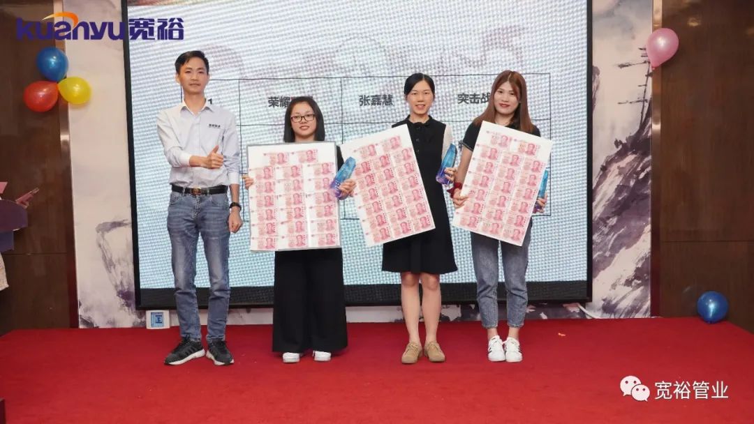 2020年11月10日下午3點,寬裕管業(yè)十月業(yè)績爭霸賽頒獎盛典在維也納珠江廳舉行,為本次爭霸賽表現(xiàn)優(yōu)異的同事們進行嘉獎,這次爭霸賽中英雄輩出,涌現(xiàn)了百萬英雄、五十萬旗手、亮劍英雄、明日之星等。