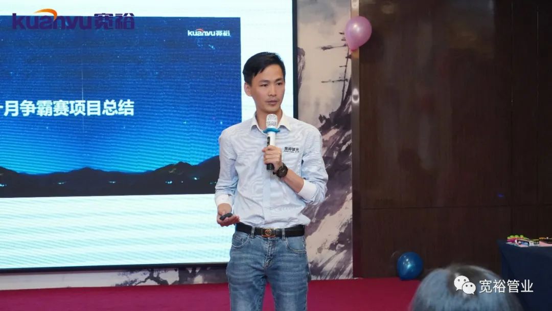 十月份頒獎結(jié)束后,寬裕管業(yè)集團總經(jīng)理黃寬銘先生對于十月業(yè)績爭霸賽做出了總結(jié),黃寬銘先生表示到,爭霸賽是一場借假修真的戰(zhàn)役,更是一場武林大會,也告訴了我們稱為武林高手的秘籍。他寄語寬裕人: