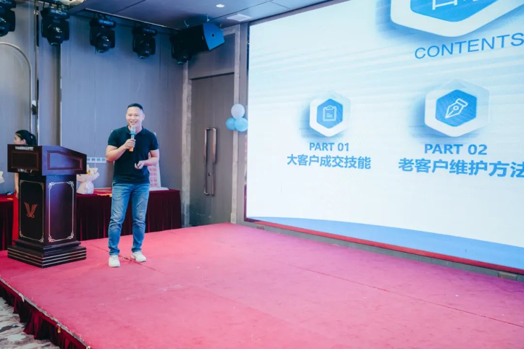 來自飛虎隊(duì)的高級銷售工程師“武一”,是我們本次復(fù)購戰(zhàn)誕生的第一個(gè)大單王,也是百萬戰(zhàn)神。在現(xiàn)場分享了老客戶的成交方法及維護(hù)方法,從產(chǎn)品專業(yè)力、客戶分析能力、客戶跟進(jìn)方法等方面,分享了一些自己的小技巧。并深情介紹了自己在寬裕10年的成長歷程與收獲, 寬裕十年,追風(fēng)少年成才俊,風(fēng)雨兼程見肝膽。