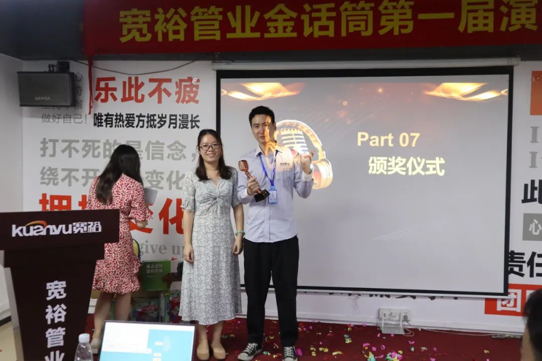 寬裕管業(yè)金話筒第一屆演講比賽在歡樂的氣氛中圓滿落下帷幕。演講是重要的能力,它能持續(xù)提升我們的勇氣,信心和能量!它有很多技巧和方法,但最高境界的演講,并非來自技巧,而是“真誠”!所有出色的臺(tái)上呈現(xiàn),都離不開背后的刻意練習(xí)!正所謂臺(tái)上一分鐘,臺(tái)下十年功!愿首次參賽的15位小伙伴在演講的道路上能繼續(xù)持之以恒,越走越遠(yuǎn),讓演講能力助力我們邁向人生新世界,走向人生新巔峰!也期待更多的演講達(dá)人在寬裕企業(yè)誕生!