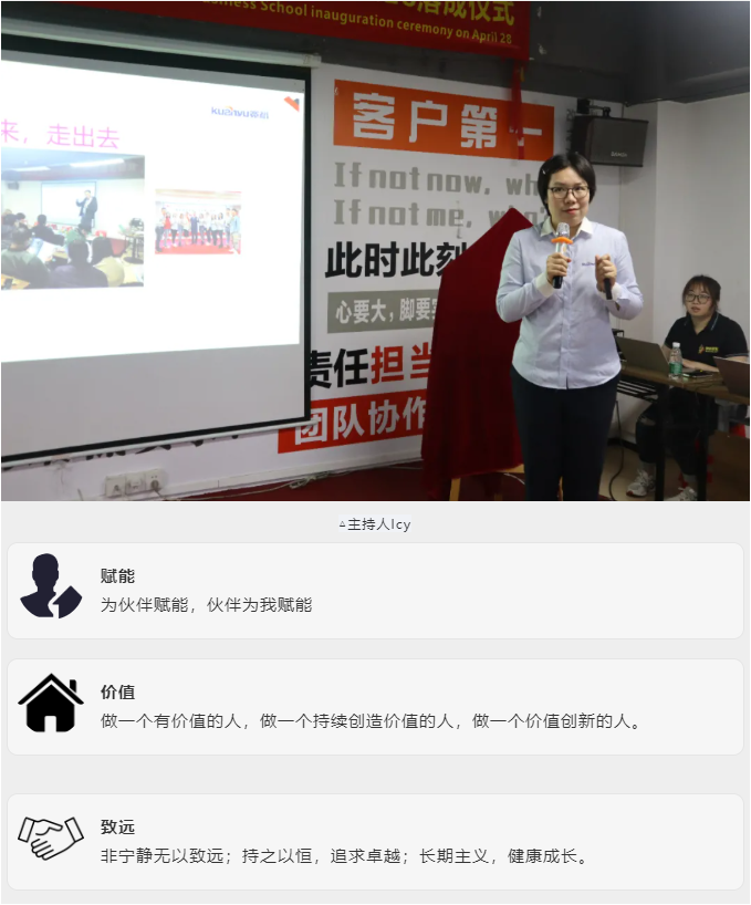 在本次揭牌儀式中,主持人Icy為大家隆重介紹了到場的嘉賓及寬裕商學(xué)院的基本情況。